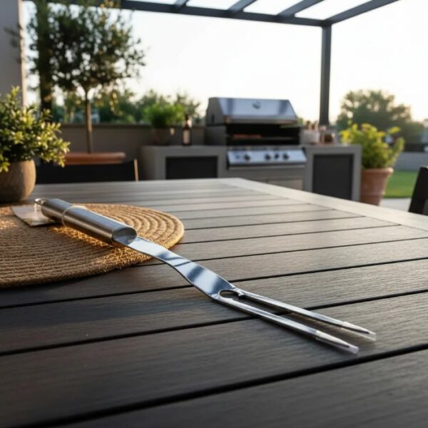 Control total en la parrilla. Nuestro tenedor grill BBQ de 42 cm está fabricado en acero inoxidable de alta resistencia, ideal para manipular cortes grandes con firmeza y seguridad, manteniendo siempre la distancia perfecta del fuego.