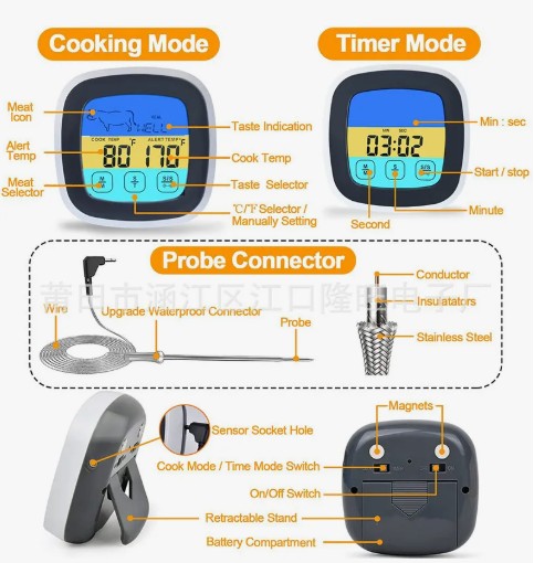 Termómetro Touch screen Grill 4 tipos de carne En Vara´s